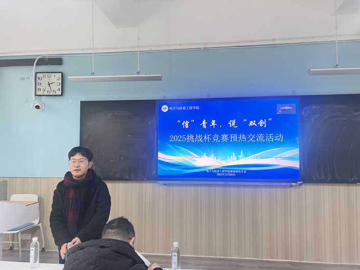 本网讯 近日,电子与信息工程学院(电信学院)在主教楼1509智慧教室成功举办了2025年“挑战杯”竞赛预热交流第一期活动。此次活动旨在积极备战即将到来的第十九届全国“挑战杯”课外学术作品科技竞赛,指导学生充分利用寒假黄金时间,提升竞赛能力打磨参赛作品同时搭建一个交流经验、展示成果的平台。活动吸引了20组学生团队作品的积极参与,现场气氛热烈。
