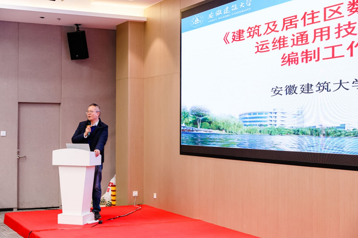 杨亚龙教授代表团体标准编制组作题为“建筑及居住区数字化技术应用运维通用技术要求标准编制工作”交流报告。报告内容包括:标准编制的背景与意义、起草单位组成情况、主要章节内容及编制进度计划等。