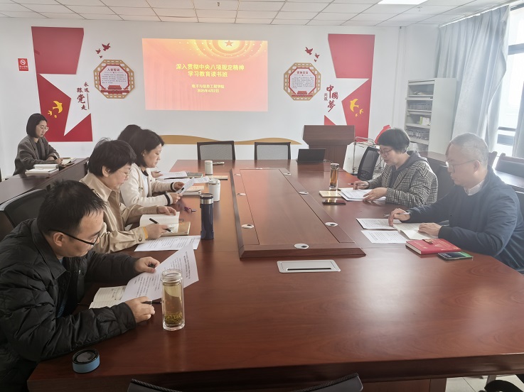 4月3日上午,学院党委组织开展深入贯彻中央八项规定精神学习教育读书班开班式暨学院党委理论学习中心组2025年第四次学习会。会上,“第一议题”学习习近平总书记考察贵州、云南和安徽重要讲话精神。张润梅在开班讲话中强调,此次学习教育,是锲而不舍落实中央八项规定精神,推进作风建设常态化长效化的必然要求。要始终用严的标准、严的要求检身正己,示范带动学院党员干部作风持续向好,以作风建设新成效更好赢得师生信任支持、更好推动学院高质量发展。随后,通过领导领学等形式集体学习了中共中央办公厅印发的《关于在全党开展深入贯彻中央八项规定精神学习教育的通知》精神、中央八项规定及其实施细则全文和《习近平关于加强党的作风建设论述摘编》的部分内容,原文学习了习近平总书记关于“三严三实”的重要论述。