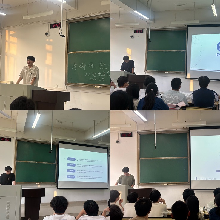 本网讯  为充分发挥党支部战斗堡垒和党员先锋模范作用,切实服务学生成长成才需求,在2026届考研即将拉开序幕的关键阶段,电子与信息工程学院学生第一党支部于近日精心策划并成功举办“研途领航,聚力成长”考研经验分享主题党日活动。本次活动特邀支部内2021级通信工程专业成功“上岸”的优秀学生党员朱健、张龙等担任主讲,为2022级通信工程专业的学弟学妹们带来了一场诚意满满、干货十足的考研经验盛宴。
