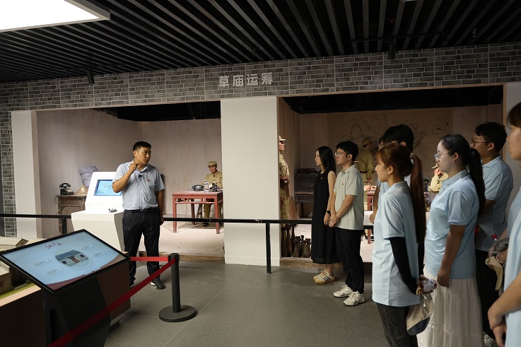 学生党员们在讲解员的带领下参观历史文物、珍贵图片及详实的文字资料,深入学习 “听党指挥、依靠人民、团结协同、决战决胜” 的淮海战役精神,感受革命先辈浴血奋战的无畏气概。