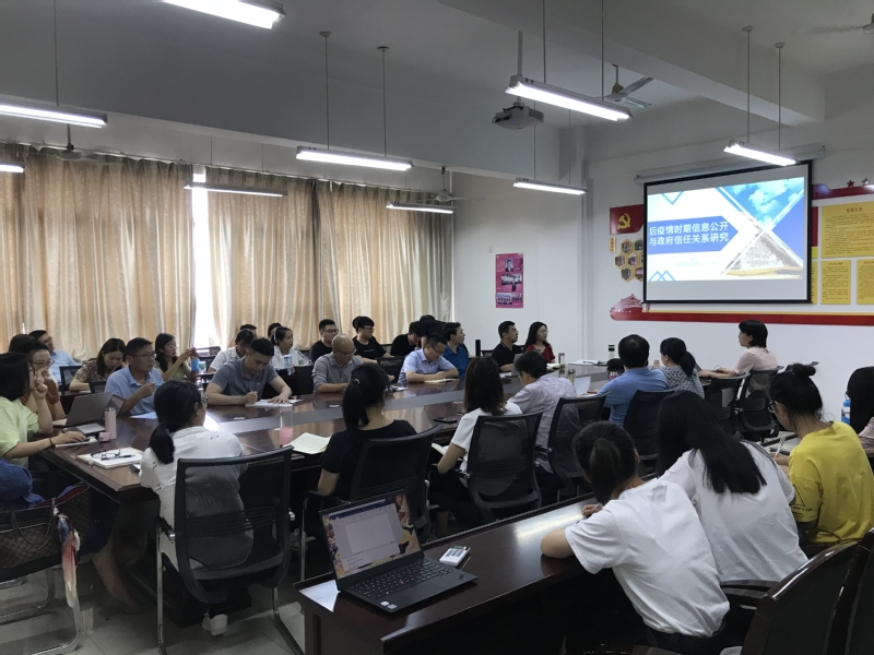 夏莲博士分享的题目是“人才引进政策对大学生就业区域选择意愿影响研究”,从内在因素、外在因素两大方面比较了国内主要城市人才引进政策及其效果。钱丽博士分享的题目是“后疫情时期信息公开与政府信任关系研究”,结合国家社科基金申报书,她从选题背景、研究现状、研究内容、创新点、研究展望五个方面分享了自己的研究。王敏博士结合《中共中央国务院关于实施乡村振兴战略的意见》,从农村土地制度改革为切入口,提出“农房共享”的研究设想,将闲置资源充分利用,以期实现“资源变资产、资金变股金、农民变股东”。最后,黄佳豪教授对三位博士的分享做了点评,并希望第一期“博士论坛”“抛砖引玉”,能够充分激发科研热情,产出更多优质成果。