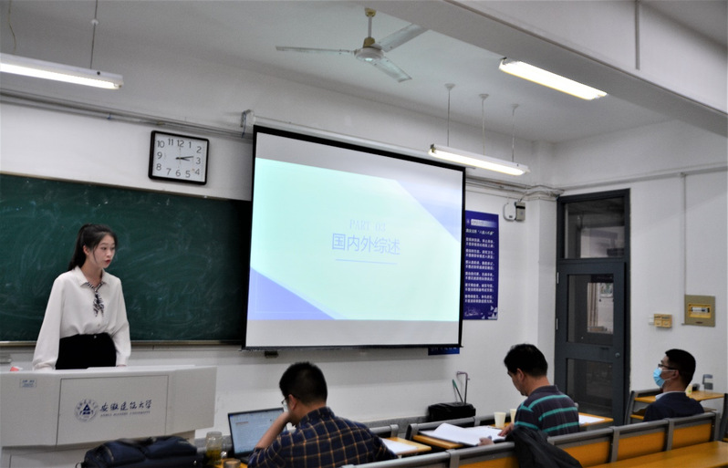 同学们分别从研究背景、国内外研究现状、研究目的及意义、研究内容、研究方法与思路、创新六个方面进行汇报。答辩老师对开题报告的专业性、科学性、创新性、可行性等方面抛出自己的问题,并提出了有针对性的修改意见。同学们认真记录问题,临场回答。