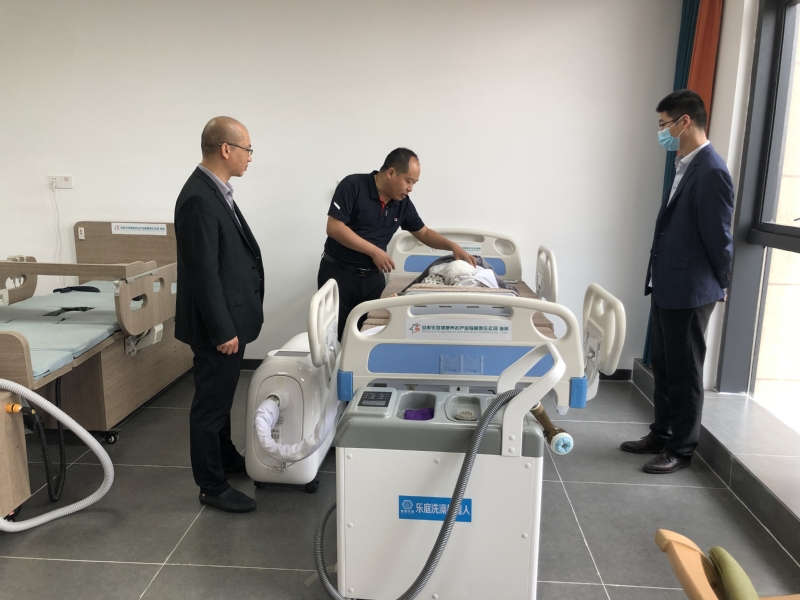 王茂光对公管学院一行表示热烈欢迎,并带领大家参观了公司,详细介绍智慧养老、居家养老的一些新产品、新服务和智慧管理系统。黄佳豪对安徽乐庭健康科技产业集团所取得的巨大飞跃表示高度赞赏,并详细介绍了学院近年来的发展。随后双方课题合作、勤工助学、实习就业、支部活动、社会捐赠等众多方面进行了深入磋商,共同期待双方在未来合作中发挥自身优势,实现合作共赢。