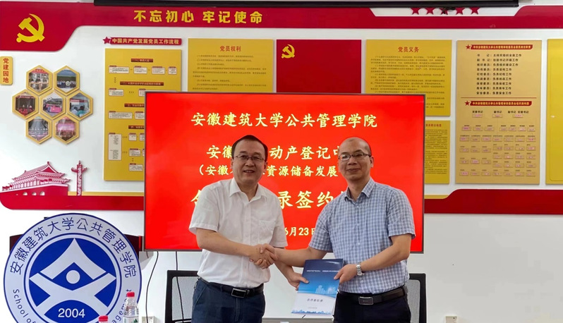 本网讯  为进一步落实厅校合作协议,推进“政产学研用”深度融合,提高人才培养质量,623日上午,公共管理学院与安徽省不动产登记中心(省国土资源储备发展中心)在学院F209举行了合作备忘录签约仪式。安徽省自然资源厅科技外事处副处长(主持工作)许兴春、省不动产登记中心主任葛文进等以及学院班子成员出席会议。签约仪式由副院长王秉义主持。