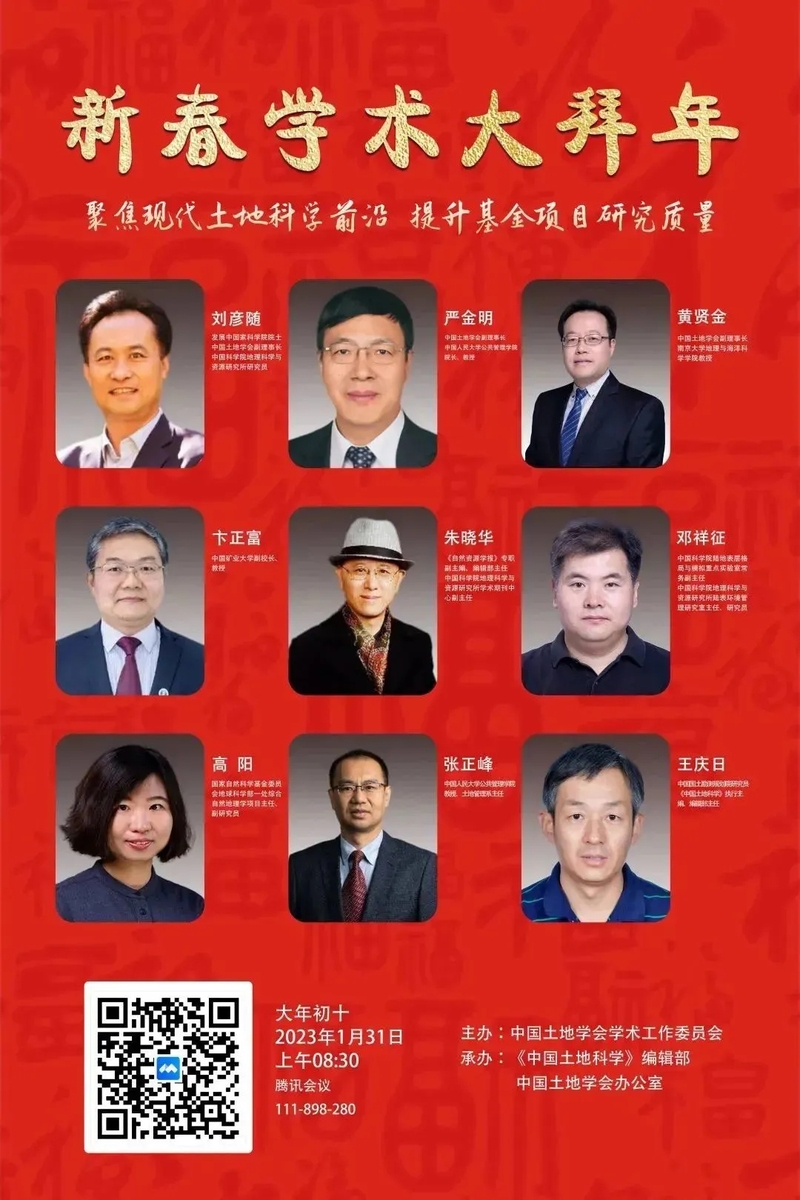 本网讯   为进一步加强科研学术交流,提升国家基金申报质量,1月31日,公管学院组织师生线上参加“聚焦现代土地科学前沿 提升基金项目研究质量”新春学术大拜年活动。活动由中国土地学会学术工作委员会主办,《中国土地科学》编辑部、中国土地学会办公室承办。学院土管系教师、土地科学研究领域国家基金申报者和公共管理硕士研究生参加活动。