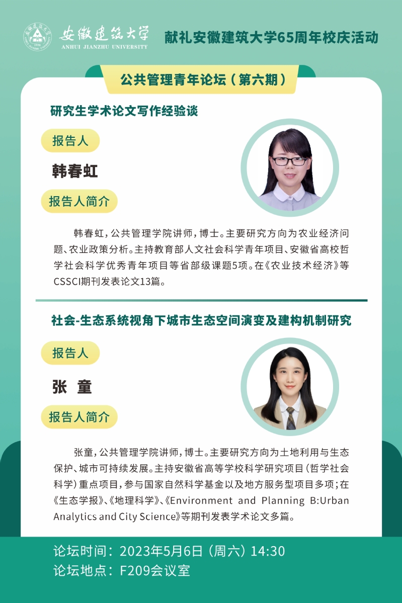 公共管理青年论坛(第6期):研究生学术论文写作经验谈、社会-生态系统视角下城市生态空间演变及建构机制研究