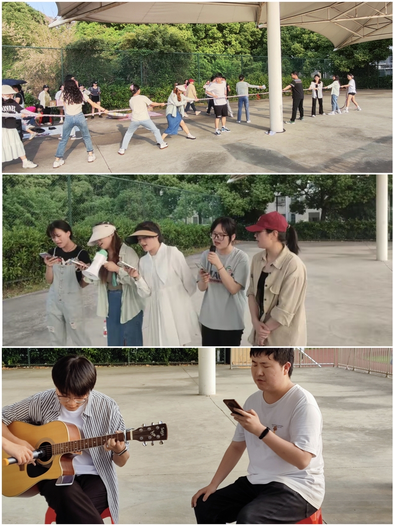周年庆活动主要有三项内容,分别为拔河比赛、猜歌名和才艺表演。拔河比赛现场“绳”彩飞扬,同学们“卯足一股劲,拧成一股绳”,即使磨红了手也不负勇往,比赛虽有输赢,但在过程中大家理解了团结一致的重要意义。接下来是猜歌名,由主持人播放音乐,队伍成员通过抢夺“帽子”获得答题权,大家踊跃参与,氛围热烈。最后是才艺展示,有乐器弹唱、舞蹈等,充满活力的才艺表演,赢得了同学们热烈的掌声和阵阵喝彩。