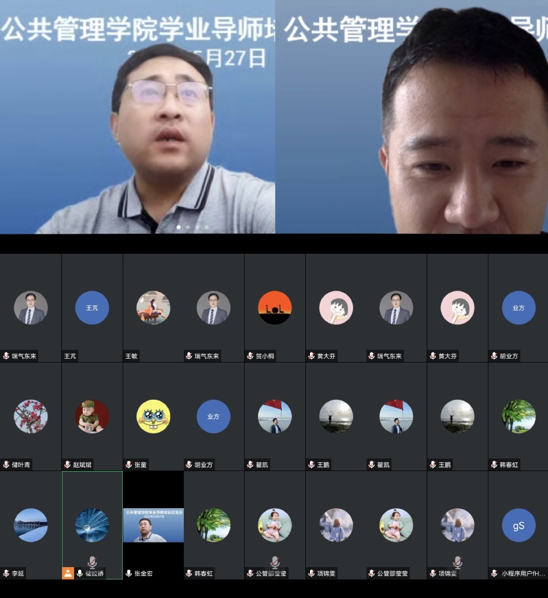 本网讯 为强化教学质量文化建设,赋能学业导师工作质效,促进高质量人才培养,5月27日上午,公管学院在线举办学业导师培训交流会,各专业系主任、学业导师等30多名教师参加活动,副院长连瑞瑞主持会议。