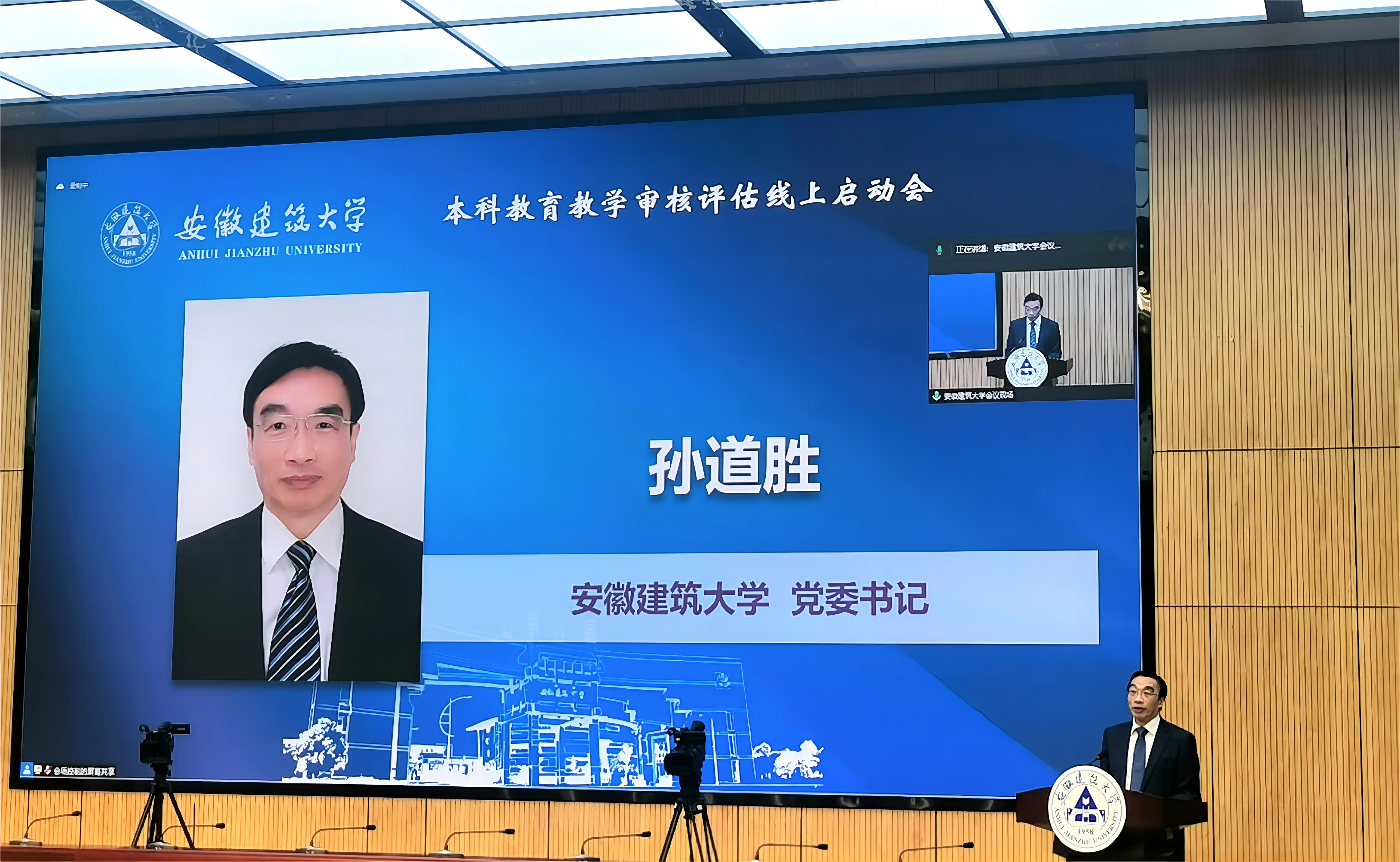 校党委书记孙道胜代表学校致辞。他指出,学校作为安徽省第一所部省协同评估试点高校,参加教育部新一轮审核评估。这既是教育部教育质量评估中心和安徽省教育厅对学校的信任,也是学校主动承担新时代高等教育评价改革的责任担当。审核评估是学校总结办学经验、深化综合改革、推动学校创新发展的强大动力。自2017年接受上一轮本科教学工作审核评估以来,学校强化评估结果使用,启动“学科特区”和“人才特区”建设双轮驱动战略,以“建设一流学科、打造一流团队、培养一流人才、产出一流成果”为目标,牵引带动学校高质量发展。他强调,学校想要“办好教育”的初心和决心坚定不移,本次新一轮审核评估对推进学校高质量发展具有重要意义,是学校深入推进“十四五”规划“一二三四”战略和“十大主要”任务,着力推进国内一流、特色鲜明的高水平建筑大学建设的一次重要契机。全校上下将按照新一轮审核评估的要求和程序,以最好的态度、最快的速度、最高的质量密切配合好专家组工作。坚决抓好反馈问题整改落实,不断提升学校本科教育教学水平。