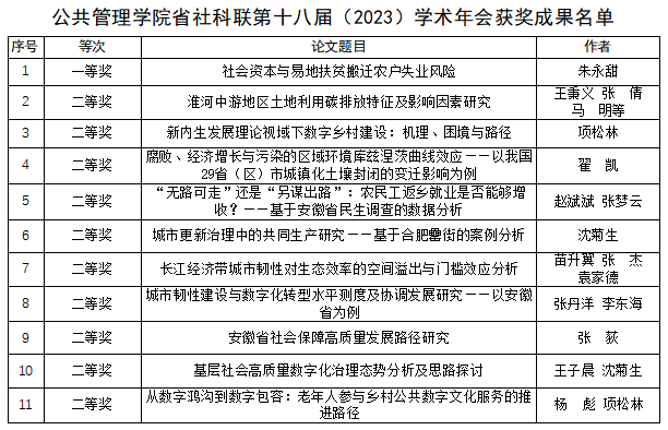 公管学院11项成果获安徽省社科界第十八届(2023)学术年会成果奖