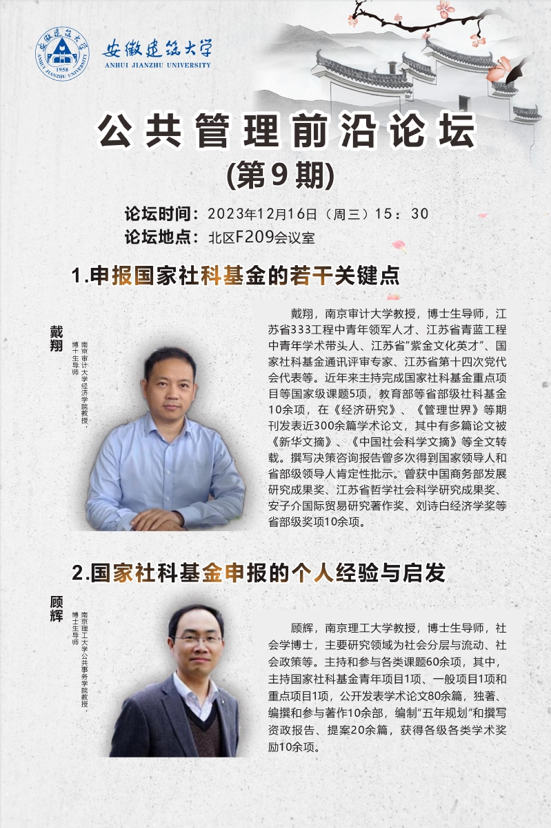 公共管理前沿论坛(第9期):申报国家社科基金的若干关键点 国家社科基金申报的个人经验与启发