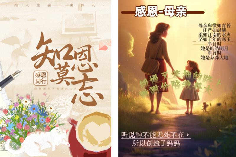 “知恩莫忘,感恩同行”海报设计大赛以线上线下相结合方式进行,公管学子积极报名,提交作品40余份,经学院评选,2020级社保专业郭梓玥、2023级法学专业张倩两位同学的作品荣获一等奖。本次参赛学生所设计的海报作品有以水墨古风为韵,有以自然风光为主基调,艺术表现形式多样,主题鲜明,内容丰富,在深化学生相关技能的同时,也展现我院学子的熠熠风采。本次活动将感恩教育融入主题鲜明的海报设计中,通过优秀作品传递感恩之心,在海报设计中,让感恩教育入眼、入脑、入心。