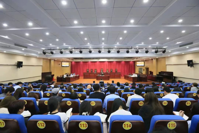 本网讯 为弘扬法治精神、传播法治理念,提升青年大学生法治意识和法律职业素养,6月27日,公管学院法学系张清丰老师带领法学专业100余名师生走进合肥市蜀山区人民法院,现场旁听诈骗案件庭审,切身感受法律的威严与神圣