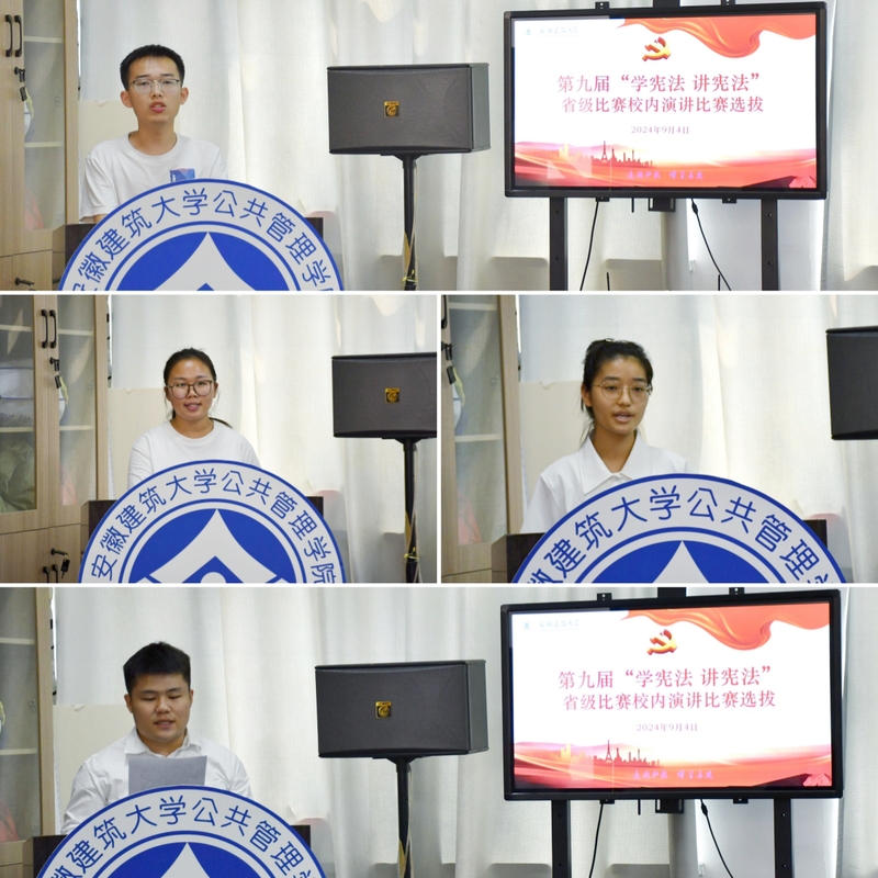 经班级推荐、笔试答题、现场演讲层层选拔后,公管学院从2022级、2023级200余名法学专业学生中选拔4名选手作为省赛参赛选手。其中,2022级法学王雨鑫和2023级法学房浩琳成绩优异,代表学校备战“学宪法 讲宪法”省赛“法治素养竞赛”,2022级法学吴童林和2022级法学赵芯蕊表现突出,代表学校备战“学宪法 讲宪法”省赛“演讲比赛”。