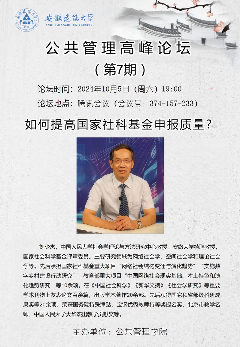 公共管理高峰论坛(第7期):如何提高国家社科基金申报质量?