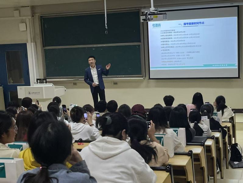 讲座期间,朱建华围绕定向选调生和国考省考的报考政策、考试大纲、题型种类、解题技巧等方面进行了详细介绍,同时结合往届考生的经验为同学们提供了一份精准化、科学化、系统化的备考攻略,让同学们更加清晰地明确考试要求,掌握备考策略,提高考试通过率
