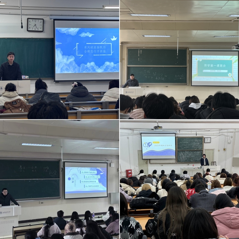 为确保班级工作高效有序开展,各班级召开主题班会与班委工作例会。在主题班会上,辅导员们总结上学期班级建设情况,围绕安全教育、电信诈骗、学风建设、心理健康、考研就业等各项工作进行了详细部署,并动员同学们积极参与学科竞赛、文体活动等,不断提升综合素养;在班委工作例会上,学院党委副书记江侠着重强调班委的责任意识与工作能力,作为班委,需清晰认知自身定位,明确在班级管理中的职责,强化学习意识,提升班级管理服务水平,夯实安全稳定基础,为学院高质量发展提供强有力保障。