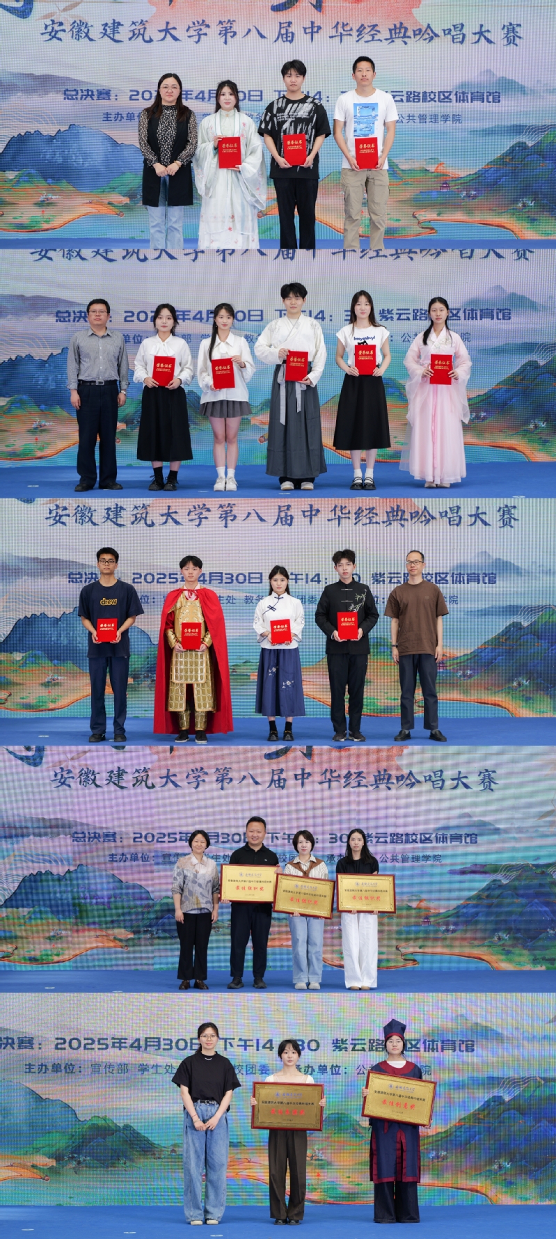 经过评委组从内容创意、表演形式、教育意义等维度的综合评审,公管学院《清吟离骚 廉心常存》等三组节目获一等奖电信学院《光的赞歌》等五组节目获二等奖材化学院《满江红》等六组节目获三等奖土木学院、经管学院、电信学院学院获最佳组织奖,艺术学院获最佳表演奖机电学院获最佳创意奖。