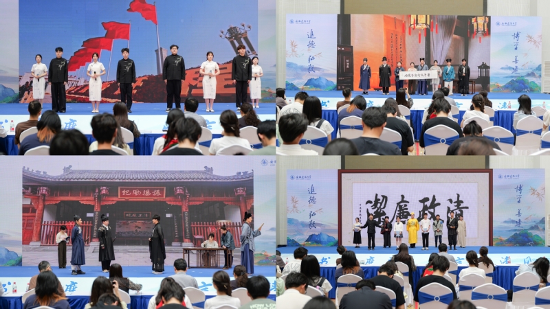 大赛自启动以来,得到全校师生的积极响应,11个学院精心筹备通过初赛选拔,最终14个作品入围决赛。节目以《诗经》《楚辞》、唐宋诗词及现当代经典文学为载体,巧妙融入朗诵、吟唱、情景剧、舞蹈、书法等多元艺术形式,将“廉”的精神内核与“诗”的审美意境有机结合,生动展现了中华经典的时代价值与育人功能。