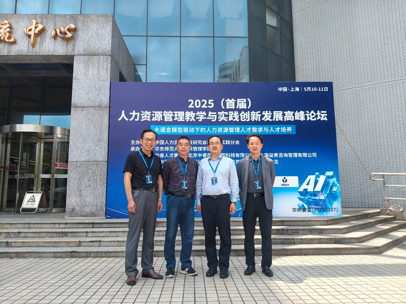 本网讯5月10日-11日,2025(首届)人力资源管理教学与实践创新发展高峰论坛在华东师范大学普陀校区学术交流中心举行,我校公管学院副院长连瑞瑞教授与人力资源管理教学创新团队陈松林教授、赵勇教授、范海洲教授应邀参会。