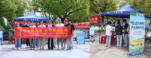 本网讯 6月25日,在全国第35个“土地日”来临之际,公管学院联合安徽省国土空间规划研究院、自然资源部江淮耕地资源保护与生态修复重点实验室,围绕“节约集约用地,严守耕地红线”主题,开展了系列内容丰富、形式多样的宣传活动,旨在普及土地资源保护知识,增强师生节约用地与耕地保护意识。