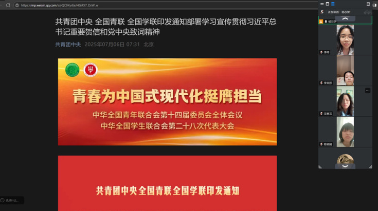 院学生会、研究生会组织骨干成员以线上会议形式开展集中学习。在学习过程中,同学们认真研读贺信和致词原文,并结合自身学习与工作实际,分享学习心得与体会。