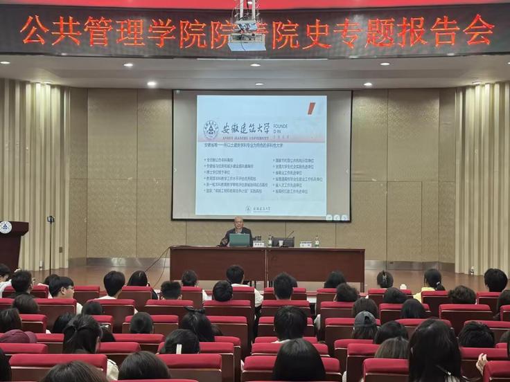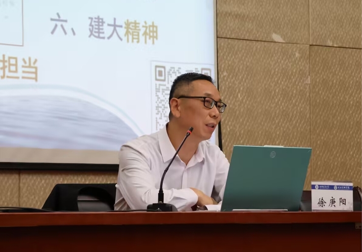 在校情校史教育中,徐庚阳以学校67年发展历程为脉络,从创办背景、发展历程、办学成就、精神传承四大维度,系统梳理1958年建校以来的重要发展阶段,为新生栩栩如生地铺展开一幅立体鲜活的学校发展画卷。他结合珍贵校史资料与个人亲身经历,生动再现了学校栉风沐雨的峥嵘岁月,勾勒出熠熠生辉的发展足迹。报告中,徐庚阳重点解读了“进德 弘毅 博学 善建”校训的深刻内涵,深入挖掘校门、校徽、校庆标识中蕴含的精神内核与文化意蕴,助力新生在了解校史之余,更深层地体悟学校的精神传承与文化底色。他鼓励2025级新生坚定理想信念,明确责任使命,将爱校荣校意识内化于心,外化于行,争做优秀的新时代建大青年,以自身发展为建大发展再添助力。