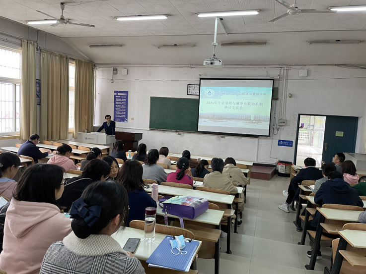 本网讯 4月14日下午,经管学院在北区A107专门召开学业导师—辅导员联动机制交流研讨会,进一步落实“以生为本”理念,推进“三全育人”工作,促进学业导师和辅导员工作融合,提高本科生人才培养质量。副院长彭志胜主持会议,全体学业导师、辅导员、系主任及教学办相关人员共30余人参加。
