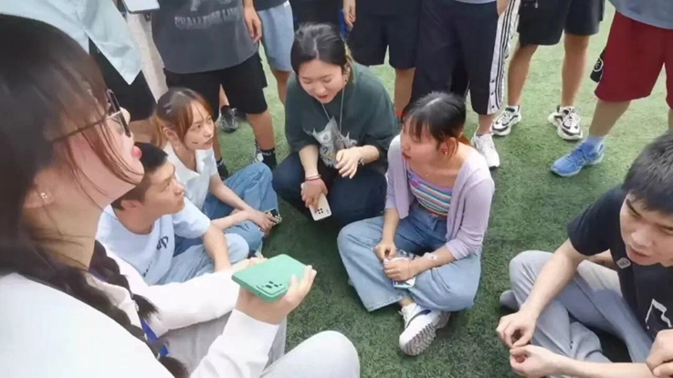 碧空万里,清风破暑。操场上风和日丽,正是运动的好时节。本次户外体育活动共有四个环节,同舟共济、四人进击、滚雪球和听歌识曲,选手们需要和队友团结合作,在混乱的纸堆中找到写有“同舟共济”四个字的纸片并完成拼图,用身体当做“城墙”防止对方将沙包投入自己的箱子里,手拉手绕过标志物合力完成往返跑,通过歌曲的前奏和声音快速说出歌名。四个环节各具特色,吸引了众多学生参与,运动场上活力四射,加油声、欢笑声、掌声响彻整个操场。