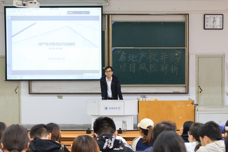 赵湘乐结合自己长期从事地产投资、合规风控的工作经历,综合其经手的数百宗投资收并购相关案例,以“地产收并购项目风险解析”为题,围绕公司基本情况调查、目标地块基本情况调查、目标公司账务情况调查、收购中的法律风险调查等方面,详细介绍相关岗位的工作内容以及相关岗位对知识、素质和能力方面的要求。讲座期间,同学们认真听讲,积极交流互动,现场气氛热烈。