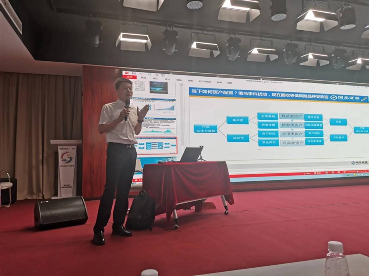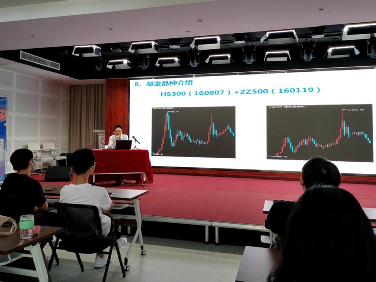 国元证券合肥胜利路证券营业部金牌理财顾问姜杰向同学们系统介绍了国元证券股份有限公司的发展历程、企业文化及业务范围,重点介绍了相关理财产品的设计理念、目标客户以及产品优势。
