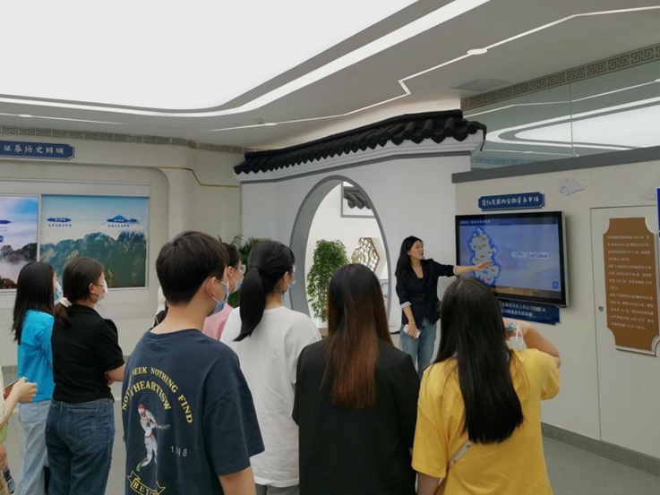 国元证券投资者教育基地王玉老师带领同学们参观了基地展厅,详细讲解中国证券业发展历史、主要产品、风险警示情况,带领大家考察了投资者适当性专区、模拟体验区等功能区域,并通过视频、图文、案例、课件、游戏等展示各类投教作品,让同学们充分了解中国证券市场的发展历程与现状。