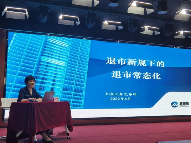 教育基地主任李红以“退市新规下的退市常态化”为题,向同学们详细介绍了我国退市制度演变及退市新规的相关知识,通过实际业务案例向同学们强调了证券行业从业者提升自身综合素养的重要性,希望同学们努力提高自我、培养专业素养。