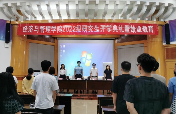 典礼在庄严的国歌声中拉开序幕。经管学院副院长首先代表学院致辞,他向顺利考取学院的全体2022级研究生表示衷心祝贺与热烈欢迎,并简要介绍了学院的基本情况、专业设置和研究生培养概况,希望同学们站在新的人生起点完善人格、开阔视野、刻苦钻研,将个人的自我实现与服务国家的志向相结合,为实现第二个百年奋斗目标贡献自己的青春力量,为实现中华民族伟大复兴而奋斗。