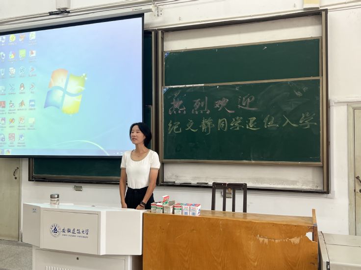 首先,辅导员孙文老师向同学们介绍了纪文静同学入伍前的基本情况,并对纪文静同学光荣退伍返校表示祝贺。随后,2022年退伍返校士兵纪文静同学介绍了自己在特种部队服役期间的表现及经历,在纪文静播放的视频中,她回顾和汇报了两年特种部队的经历、感悟和收获,畅想了今后的学习生活,军旅生活是一次宝贵的成长经历,坚定了理想,磨练了意志,增强了体质,加深了对责任、荣誉、使命的理解,复学后将不忘携笔从戎初心,不断提升自己的综合能力。