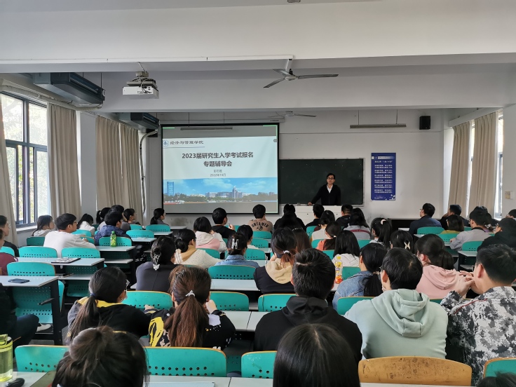 本网讯 为进一步做好2023年硕士研究生报考和咨询服务工作,帮助考生全面、准确了解硕士研究生报考有关政策,精准定位和匹配报考院校,提升考研成功率。10月19日,经管学院在F304召开2023届研究生入学考试报名专题辅导会,学院院长彭志胜作专题辅导,90名同学现场参会,其余学生通过腾讯会议线上参与。