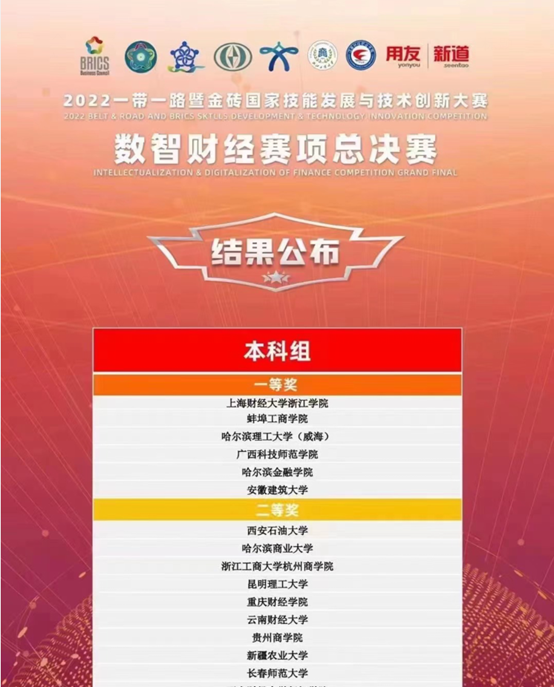 本网讯 10月30日,2022一带一路暨金砖国家技能发展与技术创新大赛数智财经赛项全国总决赛成功落下帷幕。在经管学院任国瑞和徐奕红两位教师精心指导下,经管学子张青怡、林裕凡、吴美美、罗少含组建的团队脱颖而出,最终荣获全国一等奖。