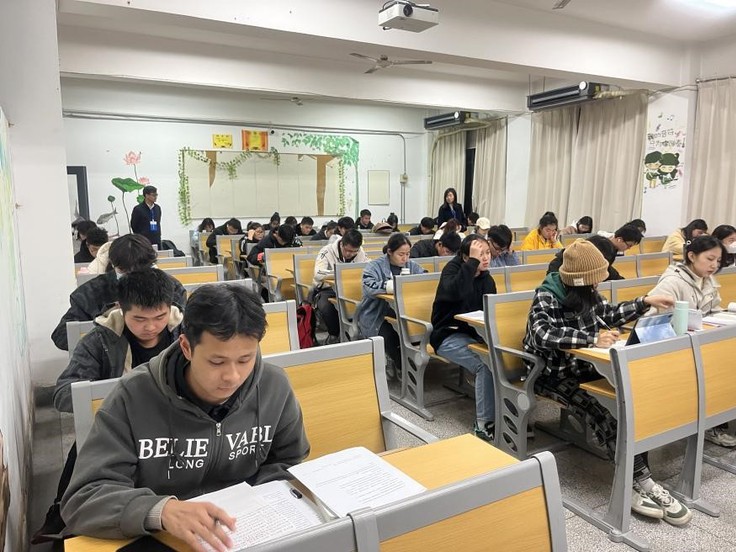 学院领导先后走进16间教室,巡查经管学院全体2022级新生的自习状况,与辅导员进行交谈,询问自习的内容安排、组织形式、管理方式等;与学生进行交流,询问他们的学习情况,叮嘱大家勤补短板,勉励同学们充分利用好晚自习时间认真备考英语四级考试与期末考试。