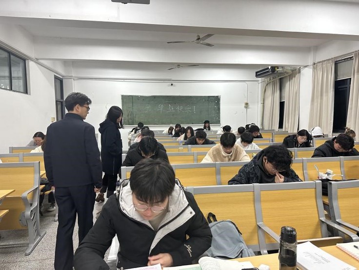 本网讯 为持续推进校风建设、创建优良学风、营造浓厚学习氛围,11月30日,经管学院领导深入教室巡查大一学生晚自习情况。