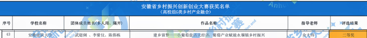 本网讯 近日,首届安徽省乡村振兴创新创业大赛结果公布,经管学子武聪俐、李紫仪、陈伟栋团队完成的作品从近200组作品中脱颖而出,荣获安徽省二等奖,喜获佳绩。