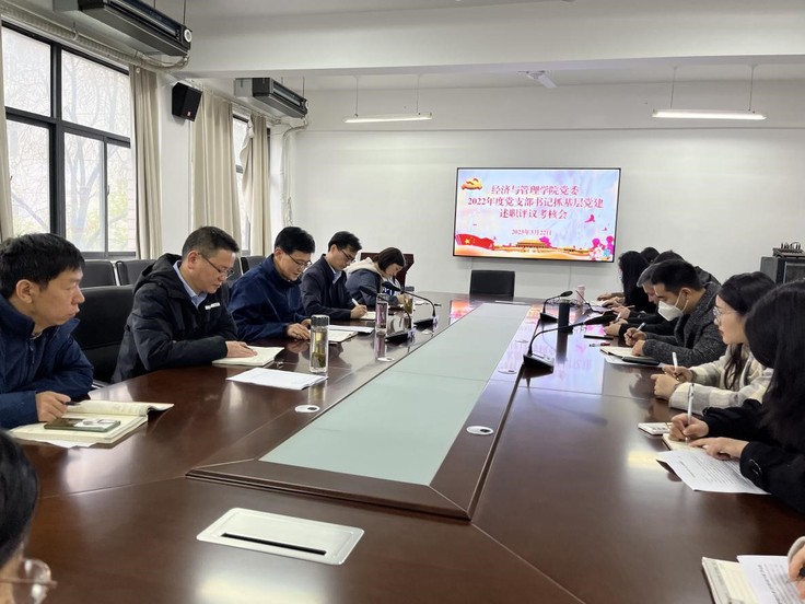 本网讯 为全面提高党建质量,夯实基层党建工作,充分发挥基层党组织的战斗堡垒作用,3月22日上午,经济与管理学院党委召开2022年度党支部书记抓党建述职评议考核工作会议。学院党委班子成员、基层党支部书记、教师代表参加会议。