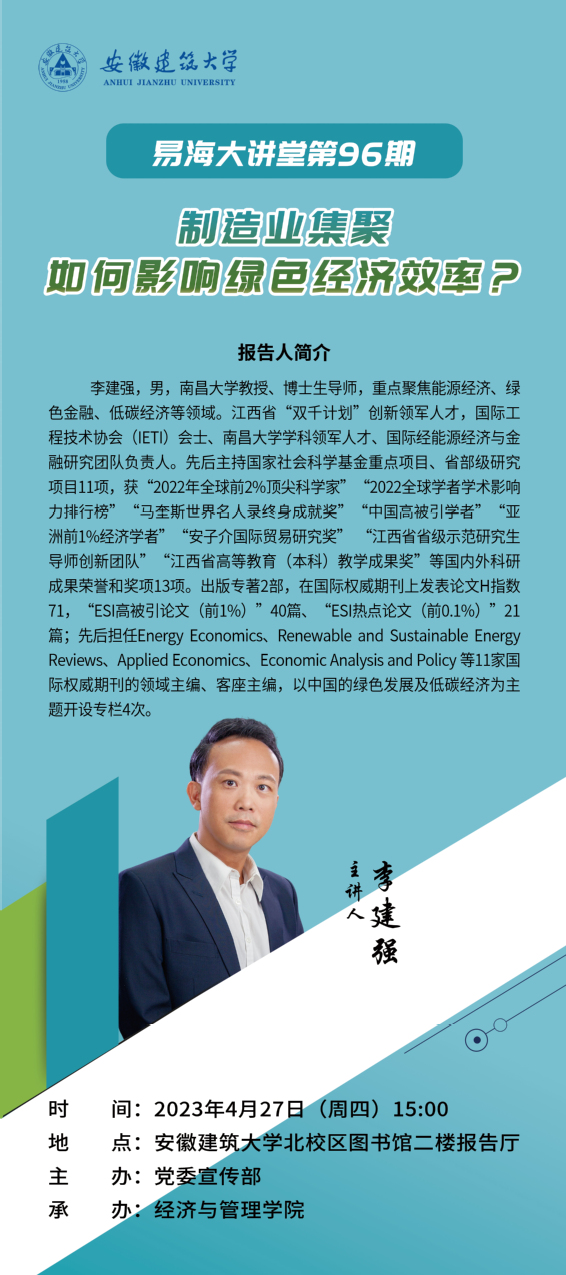 易海大讲堂第96期预告:制造业集聚,如何影响绿色经济效率?