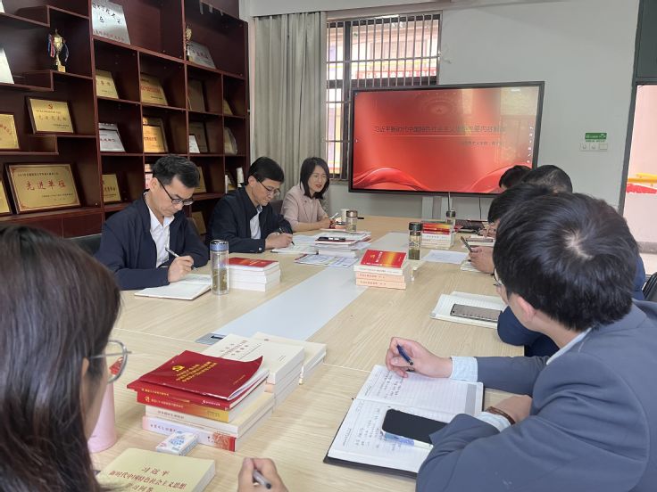 本网讯 为深入开展学习贯彻习近平新时代中国特色社会主义思想主题教育,5月9日,经管学院邀请省委讲师团宣讲专家、马克思主义学院副教授蔡正丽作题为《习近平新时代中国特色社会主义思想主要内容解读》的专题辅导报告。经管学院党政领导班子成员、师生党支部书记参会,会议由经管学院党委书记陈国中主持。