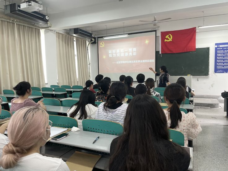 本网讯 为深入学习贯彻习近平新时代中国特色社会主义思想主题教育,激励鞭策党员坚定理想信念,引导他们感党恩听党话跟党走,5月29日,经管学院学生第五党支部在F304教室开展2023届毕业生党员“站好最后一班岗 我为党旗添光彩”主题党日活动。