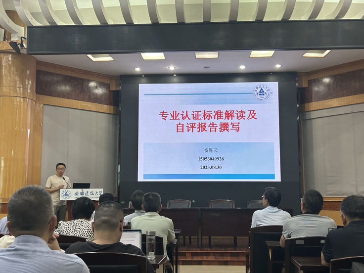 杨厚云以“专业认证标准解读及自评报告撰写”为题举办专题辅导讲座,对专业评估认证的具体标准进行了详细解读,并以给排水科学与工程专业评估认证为例,系统阐述了专业评估认证自评报告撰写过程中的关键模块和内容。之后杨厚云和胡昊与相关专任教师座谈,围绕工程评估认证的准备、组织、注意事项等进行了深入交流。