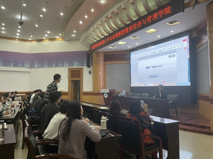 最后,在互动环节师生们与吴延瑞教授开展了深入的交流和讨论,吴教授针对师生提出的问题进行了精彩回答。此次讲座为经管院师生提供了国际化的学术交流平台,同时也为广大师生提供了一次难得的学习机会。(文/图:康玮、孙伟;审核:彭志胜)