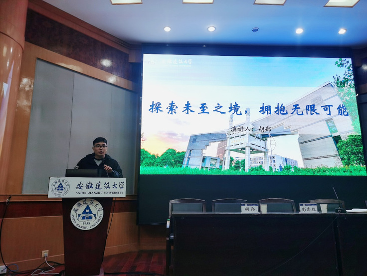 洪慧敏以“追风赶月莫停留,平芜尽处是春山”为题,从学习、竞赛、社团、生活四个方面,向同学们介绍了大学生活,并告诉大家要不段探索,找到适合自己的方向。胡郑以“探索未至之境,拥抱无限可能”为题,从转变、量变、蜕变三个层面,详细介绍了自己大学期间在学生会的经历,并以此为基,实现了创业、就业、考研多方面的成功,最后告诉大家在大学期间要敢梦、敢闯。