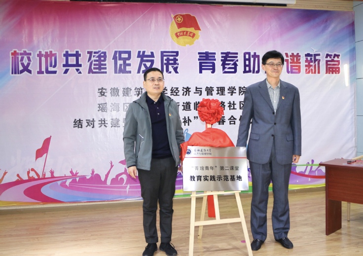 经管学院党委书记陈国中,合肥团市委四级调研员、办公室主任李锐,瑶海团区委书记刘会启,三里街街道党工委副书记、办事处主任姜得明,经管学院团委副书记余大纬,三里街街道团工委书记王玲玉,三里街街道临淮路社区党委书记詹茜茜,学院青年学生代表及三里街街道的青年代表参加此次共建仪式。
