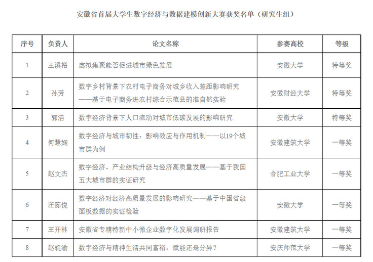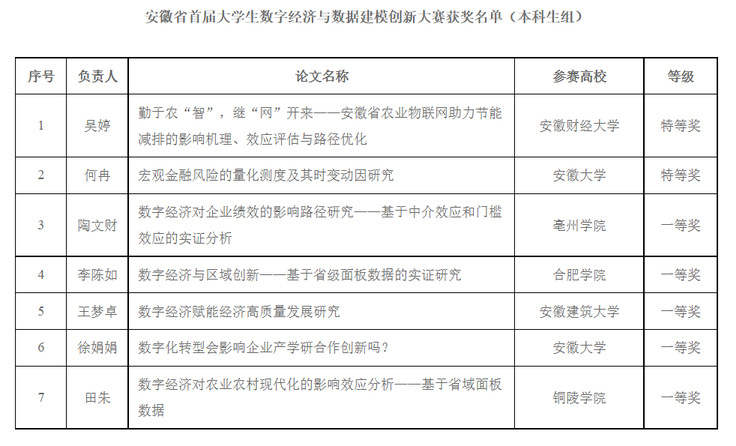 经管学子在安徽省首届大学生数字经济与数据建模创新大赛现场赛中斩获一等奖